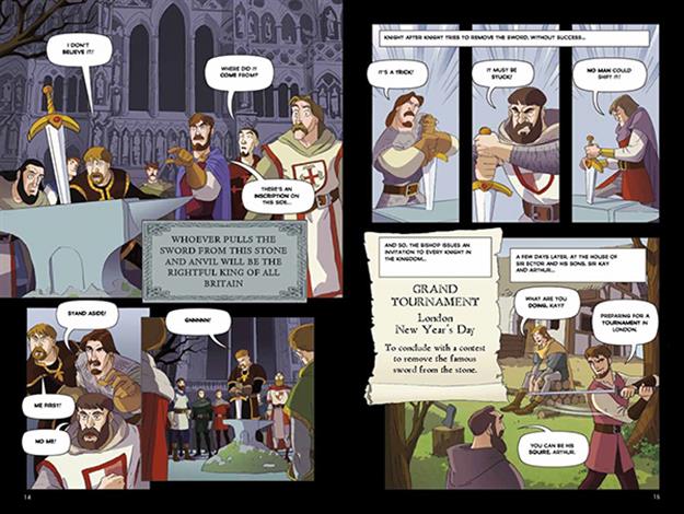 With the Kingdom of Britain facing chaos, the mysterious Merlin takes the infant Prince Arthur into hiding. Many years later, the young boy is shocked to discover that he is the country’s rightful ruler. Alongside his brave Knights of the Round Table, the newly-crowned King Arthur must fight many battles to keep his kingdom intact. Swords, sorcery and epic quests come together in this action-packed graphic adventure. Graphic novels are more popular than ever thanks to popular culture and the amount of exposure they get. These new Graphic Stories from Usborne provide a great gateway to somewhat difficult stories for reluctant readers to learn to enjoy. Specifically designed to be easily readable, with familiar vocabulary and sentence structures, these stories are entertaining, and the fun, action-packed illustrations are a great way to initiate reluctant readers to the pleasure of sitting down and being swept into an imaginary universe and be taken away by a story.