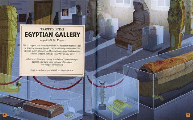 You’ll encounter terrifying dinosaurs, spooky Ancient Egyptians, vicious Vikings, amazing animals, fearsome knights, and even explore space as you find your way out of a series of mysterious museum galleries using the press-out pieces.