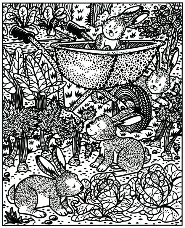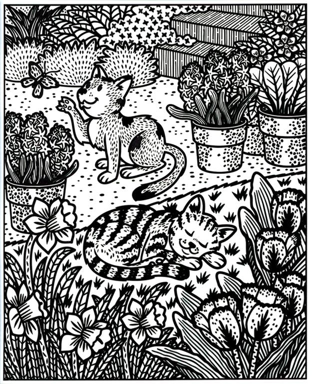 Packed with vivid scenes showing garden favorites from a pumpkin patch to busy butterflies and frolicking foxes. Simply brush water over the black-and-white designs to reveal an array of sumptuous colors.
