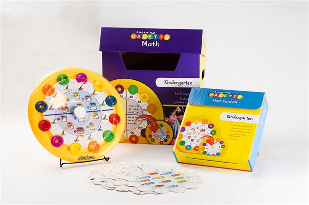 The Learning Palette Kindergarten Center Kit includes 1 – Learning Palette Base, and 5 Titles of Learning Palette cards ( Matching and Early Numbers, Numbers-Coins & Fractions, Intro to Algebra, Intro to Geometry and Measurement, and Intro to Data ) each with 12 curriculum cards. The description of the curriculum content can be found in the individual title descriptions.