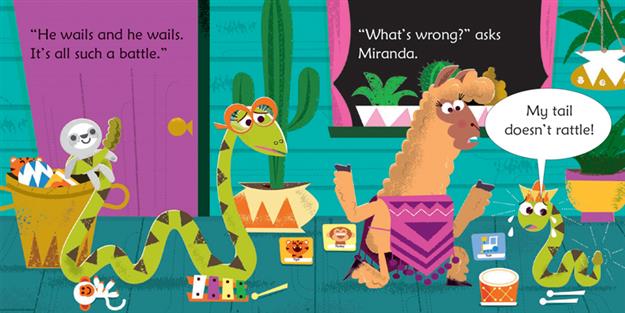 Miranda sells maracas at her stall that are great fun for all, but what happens when she stops to help a young rattlesnake who doesn’t “shake”? An exceptionally funny rhyming story, written especially to develop phonemic awareness — ideal for both reading aloud and beginning readers.