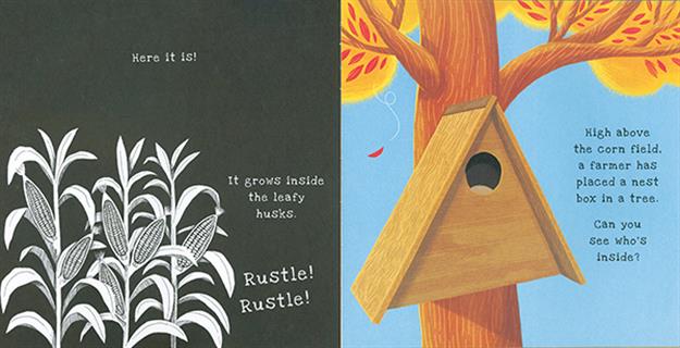 From feeding the animals in winter to harvesting the crops in fall, take a look at what happens throughout a year on the farm by shining a light behind the special see-through pages.