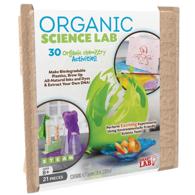 This 21-piece science kit lets kids perform over 30 organic chemistry experiments using environmentally friendly science tools! The test tubes and beakers are made so that natural microorganisms can break them down more quickly than regular plastics. And when you're done experimenting, the kit packaging is compostable! The illustrated 40-page book lets young eco-heroes perform experiments that demonstrate organic processes at work. Activities include making paper, cooking up four types of bioplastics, extracting DNA from plants, brewing natural watercolor paints, and even popping a balloon using an orange peel!