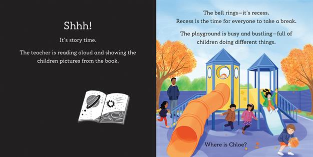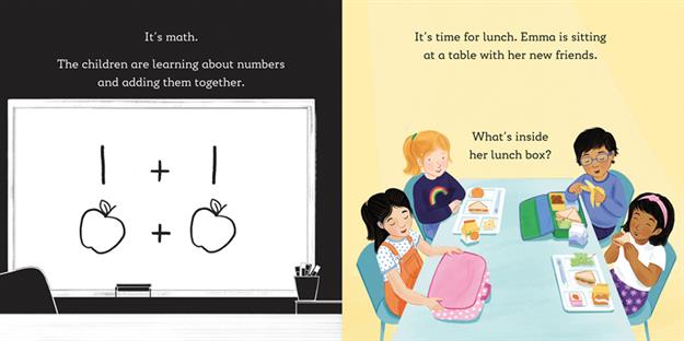 From excitedly packing a backpack and finding a seat on the school bus, to settling in to classes and making new friends, this book follows several children through their first day of school.