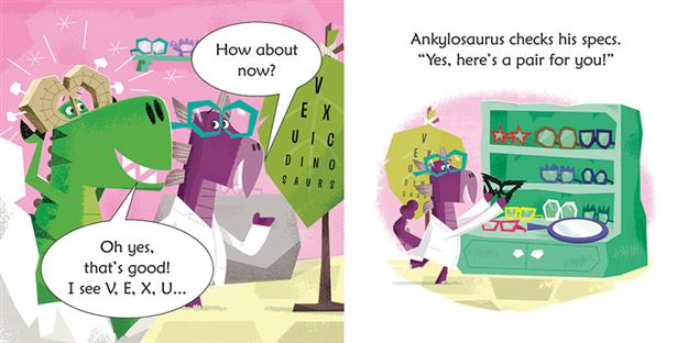 A short-sighted dinosaur, crashing around the forest... What could possibly go wrong? This laugh-out-loud rhyming story, starring quirky characters and stunning illustrations, will encourage a love of language and a joy of stories. With lots of details to spot in each scene and the added bonus of online audio.