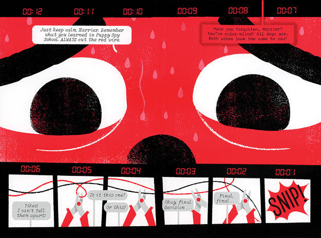 This book is set to explode! Armed with an array of gadgets, spy dog Agent Harrier must save the day in this metafictional graphic novel, complete with a dubious narrator, real-life Red Herring, and plenty of fourth-wall breaking. Includes a poster: 14 3/4" x 11 1/8"