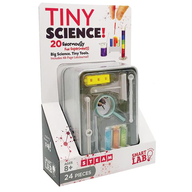 This 24-piece miniature science lab features precision science instruments tucked inside a compact storage tin. Young chemists will mix up experiments in itty-bitty beakers, test tubes, and flasks as they make a density rainbow, stretchy slime, invisible ink, a bubbling volcano, and other scientific creations. The kit contents store back inside the tiny tin, and its grab-and-go size makes it perfect for sleepovers or after-school science adventures.