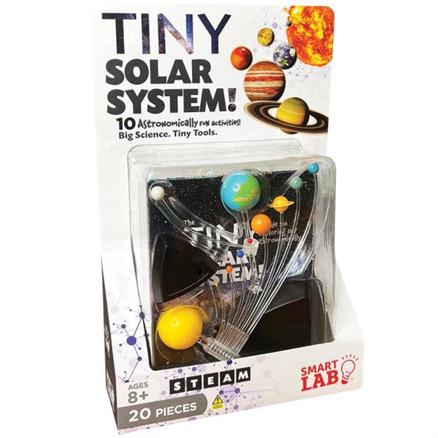 This 20-piece miniature solar system model with a light-up sun gives young astronomers an out-of-this world experience! The separate Earth-and-Moon model demonstrates day and night, the phases of the moon, Earth’s seasons, and solar and lunar eclipses. Ten interactive activities include mapping out a scale model of the solar system, making impact meteors, demonstrating eclipses, and creating art using the Sun’s UV rays. A colorful mega-mini poster brings the solar system to your bedroom wall!