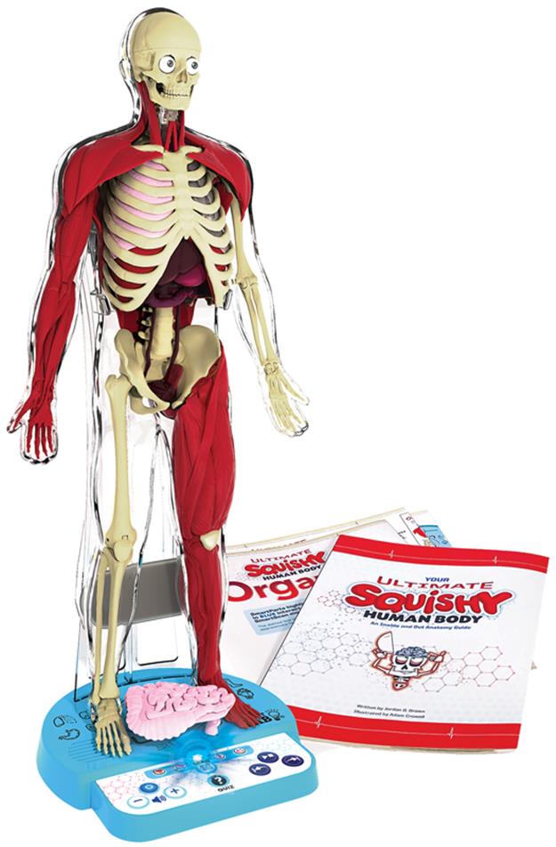 Includes: 16"" (40.6 cm) tall Human Body model, 25 removable body parts, including 10 squishy organs & 8 SmartParts, scanner base with SmartScan Technology, removable stand, organ-izer chart, quick-start guide, assembly sheet, and a 48-Page Illustrated Anatomy book. Although the book is written for slightly older children, this best-selling anatomy toy is appropriate for children ages 5 and up. Requires three 1.5V AAA (LR03) batteries (not included).