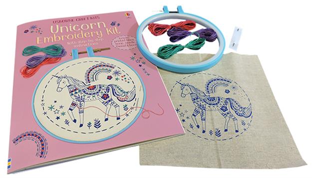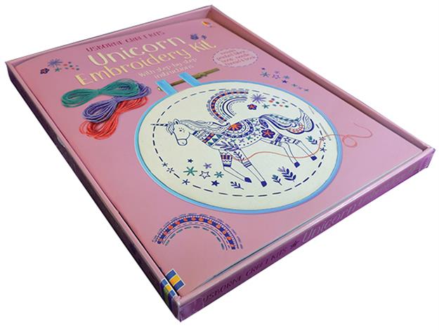 This kit contains everything you need to embroider, frame and hang a lovely unicorn piece. The 16-page book gives you simple, step-by-step instructions showing you exactly what to do at every stage along the way. Kit includes a square of 100% cotton fabric with design, an embroidery frame, three shades of embroidery thread, needle, needle threader, and a step-by-step guidebook.