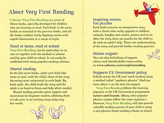 The Usborne Very First Reading set is an inspired series of fifteen books for children who are just starting to learn to read.