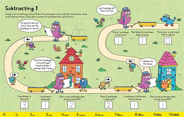 This fun book is a perfect way to help young children begin to learn how to subtract. Using the pen provided, they will be able to practice for hours, before wiping if off and starting again.