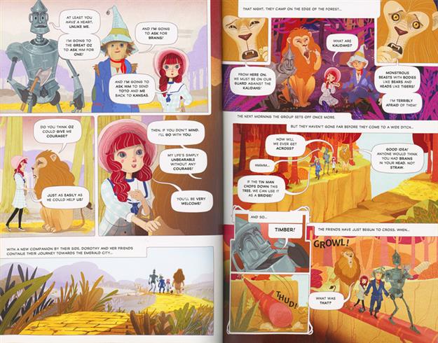 After Dorothy’s house is carried off by a tornado, she finds herself in the strange and magical Land of Oz. With the help of her new friends the Scarecrow, Tin Man, and Lion, she must persuade the Wizard of Oz to help her get back to Kansas. L. Frank Baum’s timeless fantasy is beautifully recreated in this enchanting graphic novel.